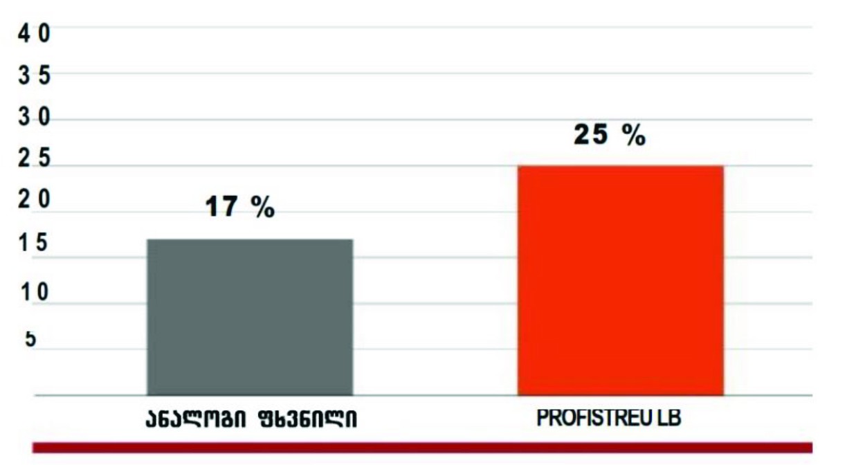 შედარებითი კვლევის შედეგები ცხადყოფენ რომ ანალოგი ფხვნილების გამოყენებასთან შედარებით ProfiStreu LB გამოყენებული უნდა იქნეს შედარებით მცირე რაოდენობით გამომდინარე მისი მიერ ტენიანობის შტანთქმის უაღრესად მაღალი შესაძლებლობით.