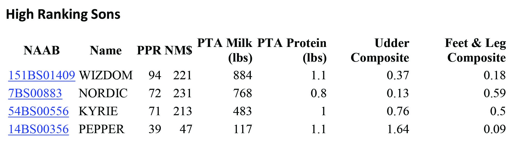 Daughter Average: 10,780 kgM   450 kgF   4.20%F   357 kgP   3.30%P