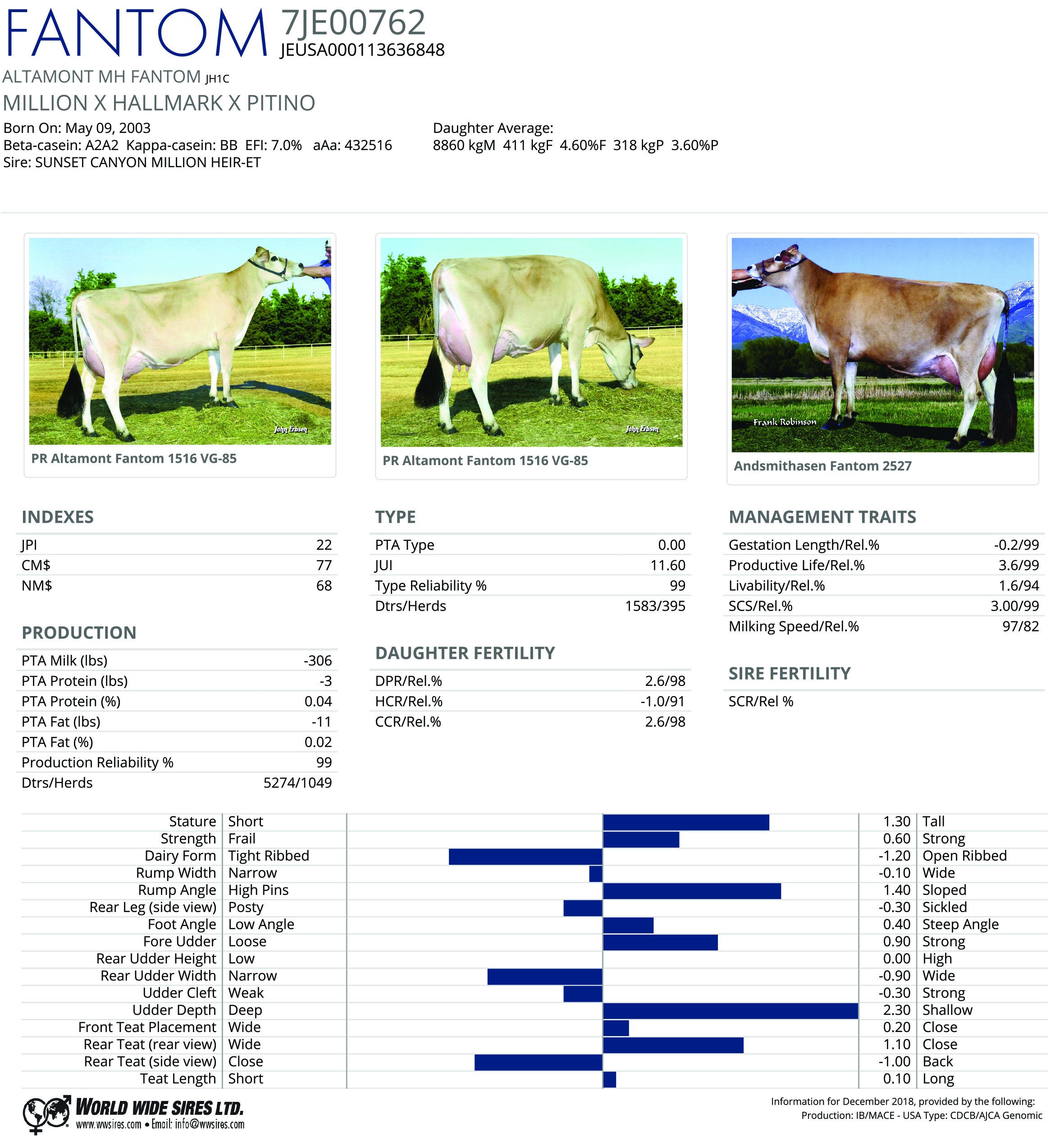 Beta-casein: A2A2 Kappa-casein: BB EFI: 7.0% aAa: 432516