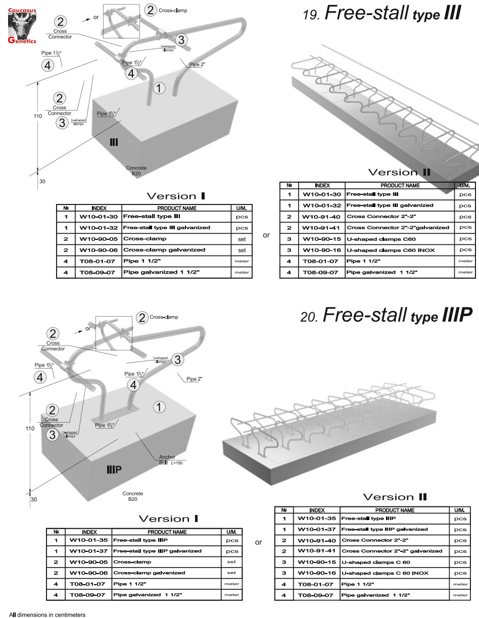 ფურების თავისუფლად დგომის შენახვის სისტემები Free stall cubicles